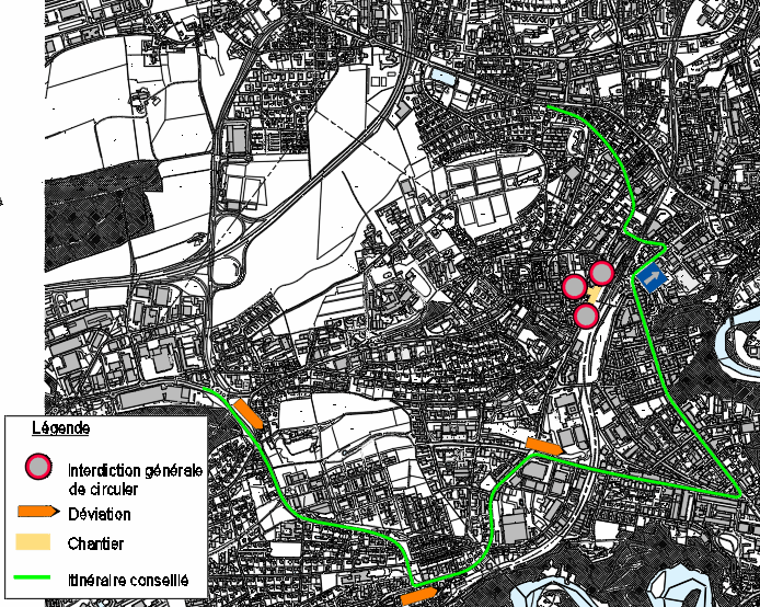 - Carrefour Richemond fermé. Accès au centre-ville et à la gare par la route de la Fonderie et le Boulevard de Pérolles.