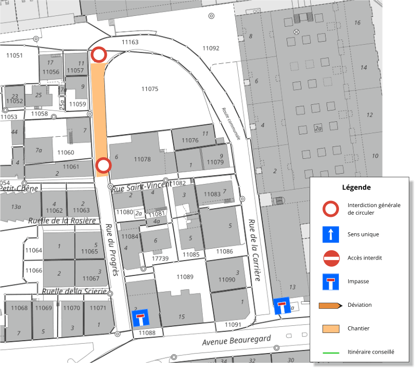 Restriction de circualtion - Rue du Progrès - 13 avril - 9 juin 2023