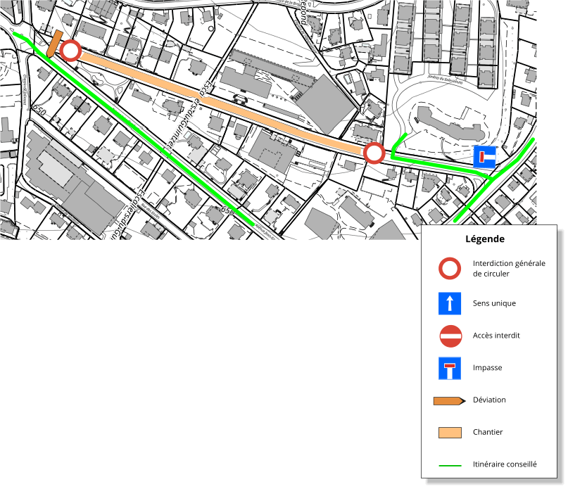 - Av. du Moléson fermé côté carrefour du Gambach. Accès en impasse depuis l’Av. Louis-Weck-Reynold.