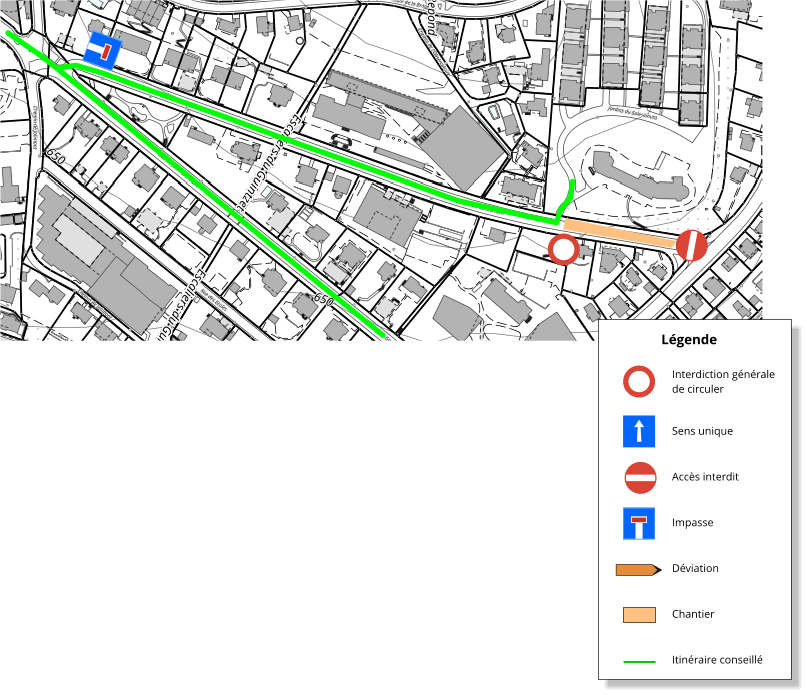 - Av. du Moléson fermé côté Av. Louis-Weck-Reynold. Accès en impasse depuis le carrefour du Gambach.