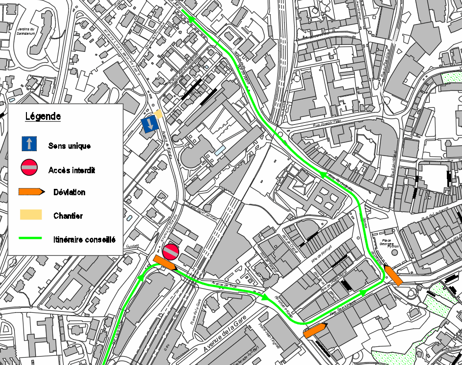 - Avenue de l'Europe en sens unique en direction de la gare. Déviation mise en place pour le quartier du Torry par la rue St-Pierre et la rue de Rome.