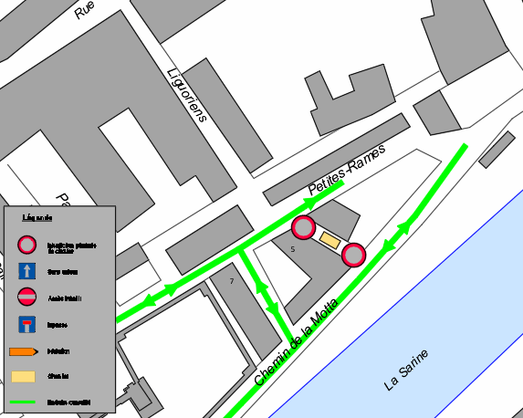 - Accès devant Petites-Rames 5 côté place de jeux fermé. Circulation dans les deux sens sur l'accès entre Petites-Rames 5 et 7.