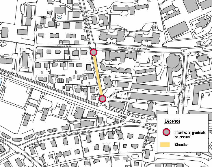 - Route des Bonnesfontaines fermée. Accès en impasse de part et d'autre. Accès riverains possible par le haut ou le bas, selon l'avancement des travaux.