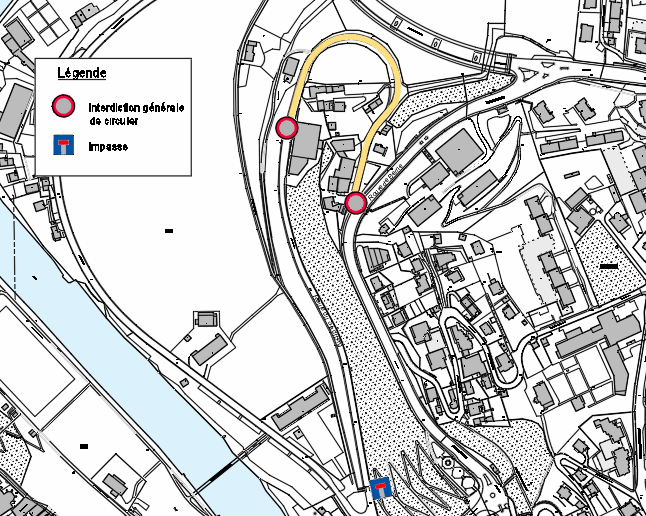 - Route du Stadtberg fermée entre la route de Berne et le bâtiment n° 7. Accès à la basse-ville par la Route-Neuve.