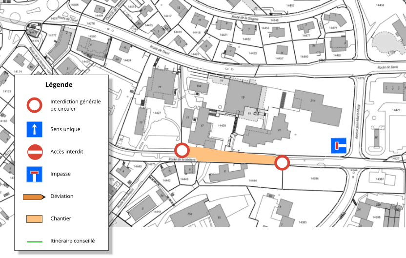- Rte de la Heitera fermée entre l’av. Jean-Marie-Musy et la rte Mon-Repos. Accès par la rte St-Barthélemy.