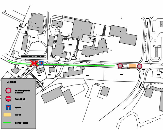 - Route de la Heitera fermée au niveau du giratoire. Accès en impasse depuis le carrefour Mon-Repos - Heitera