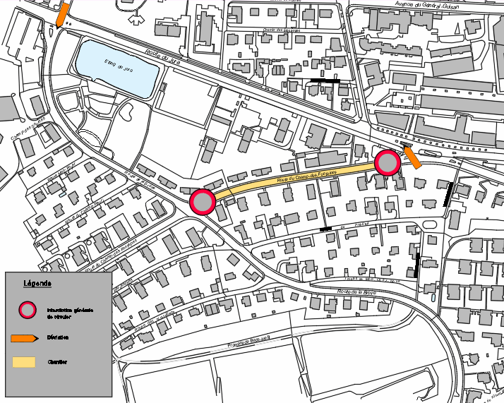 - Rte du Champ-des-Fontaines fermée à la circulation, déviation par la rte de la Broye