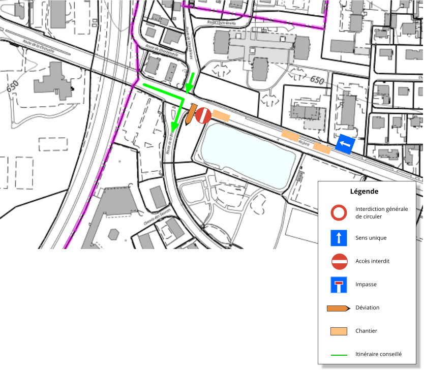 - Rte du Jura mise à sens unique direction Givisiez entre la place de fête et le carrefour de la Chassotte. Entrée de ville, déviation par la rte de la Broye.