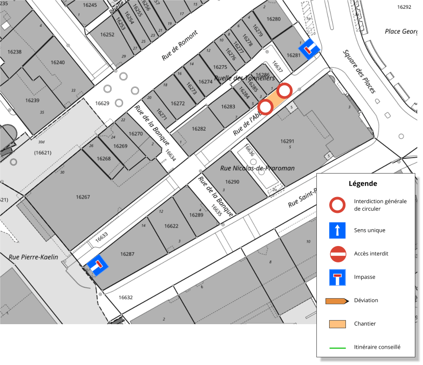 Rue Abbé-Bovet fermée. Accès en impasse des deux côtés.