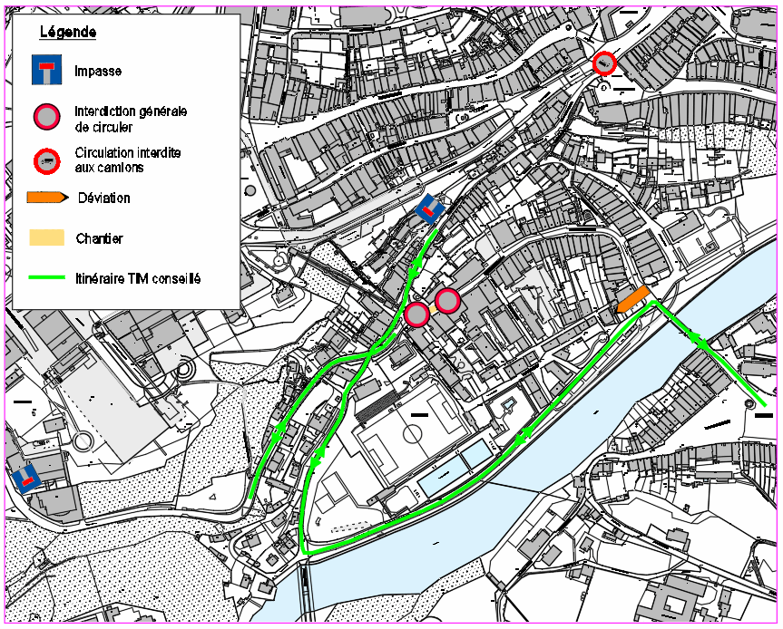 Rue de la Neuveville fermée au niveau du No 4 et 6. Accès en impasse depuis le Bd de Pérolles. Déviation par la rue de la Sarine