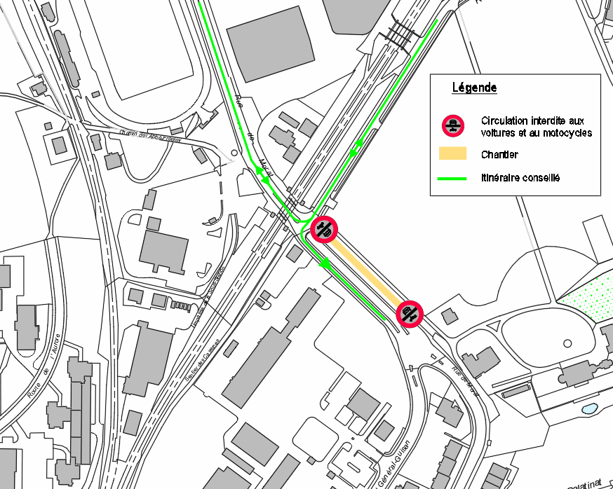 - Rue de Morat (haut de la trémie) direction Granges-Paccot fermée. Accès à la route de Grandfey par la rue de Morat (coté Granges-Paccot).