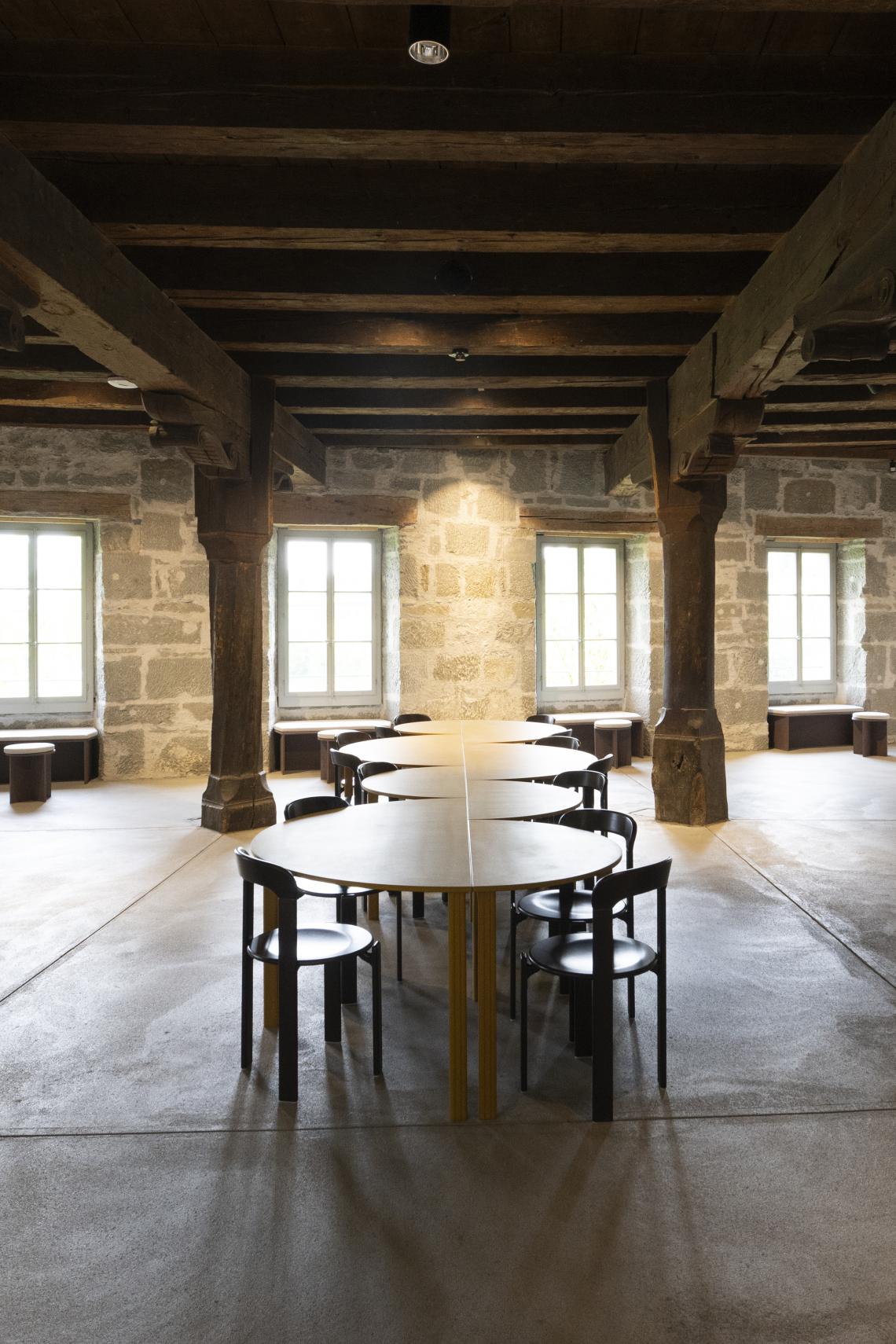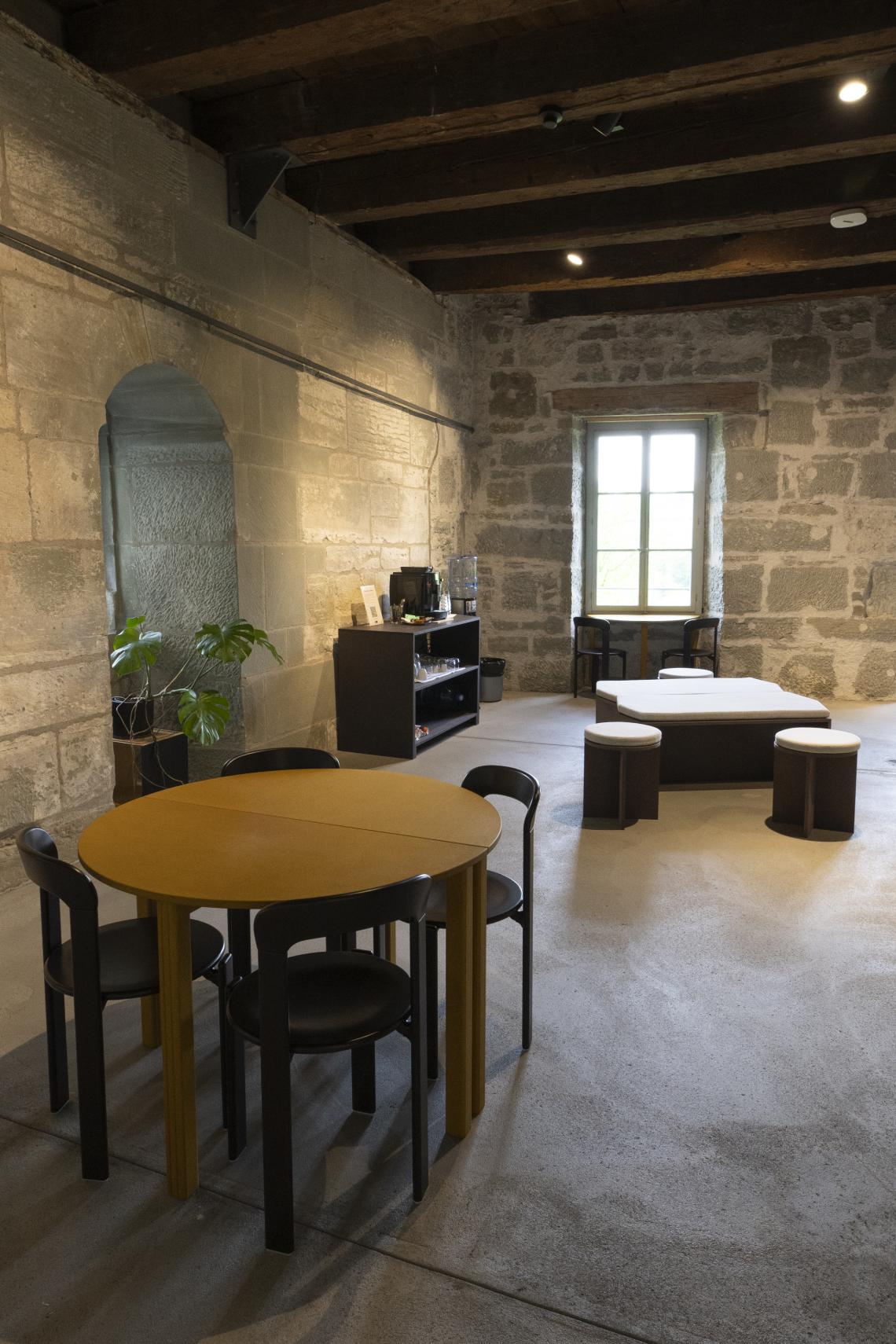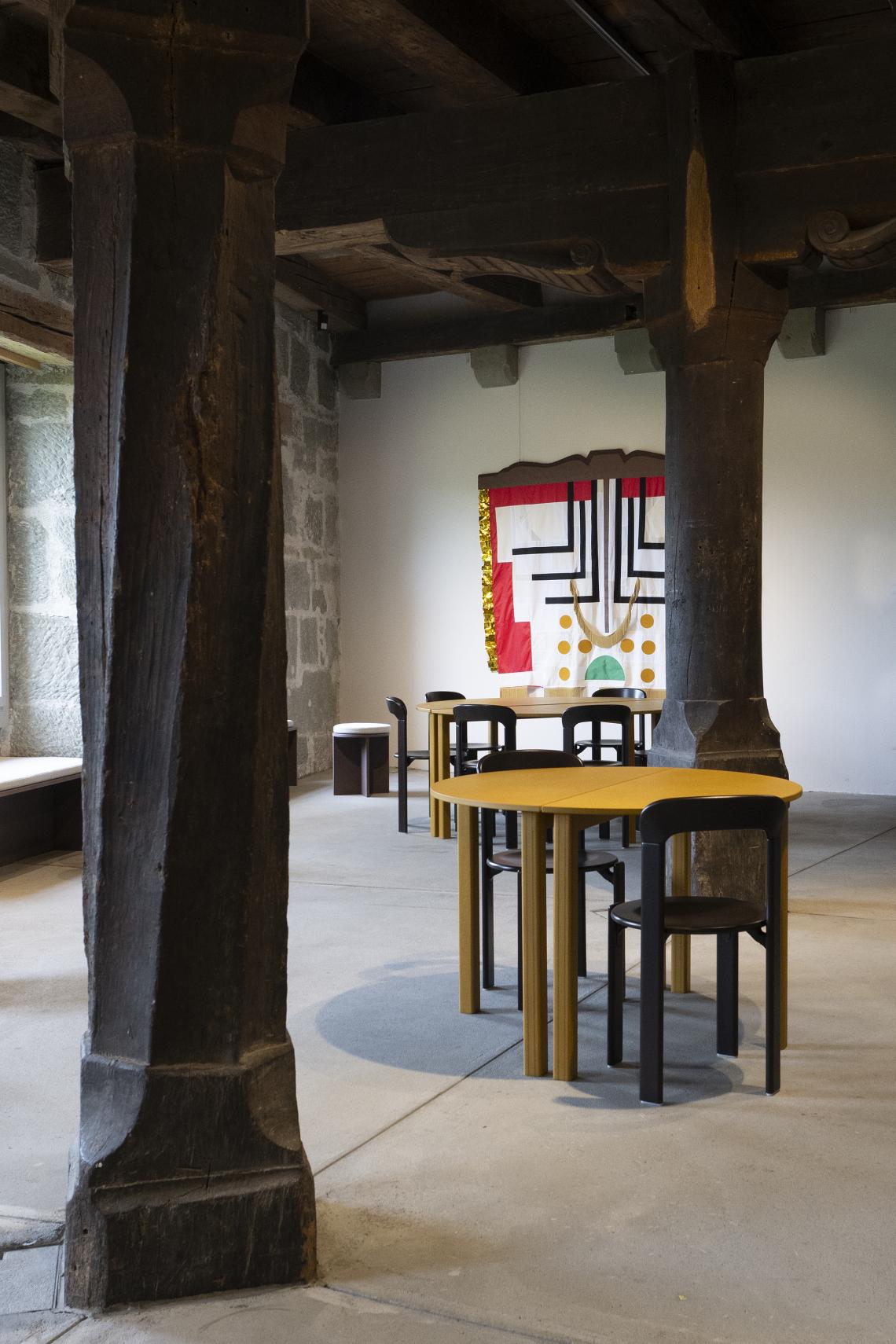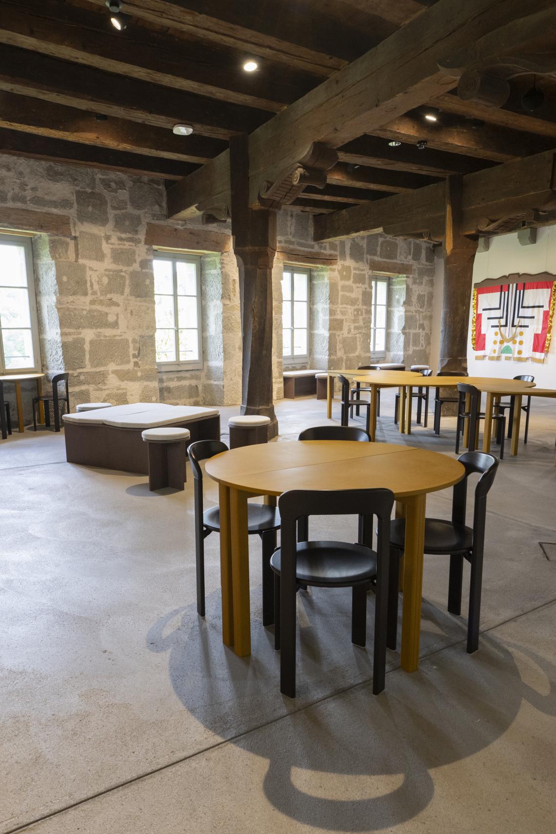 Imaginer et réaliser l'aménagement intérieur de L'Atelier pour donner vie à l'espace convivial qu'est le Foyer, c'était l'objectif de l'appel à projets lancé par la Ville de Fribourg. C'est la proposition de meubles modulables faite par l'architecte Jonas Altorfer qui a été sélectionné, ainsi que l'oeuvre de l'artiste Julie Beer qui complète le concept. La production a été assurée par Potential Holz.