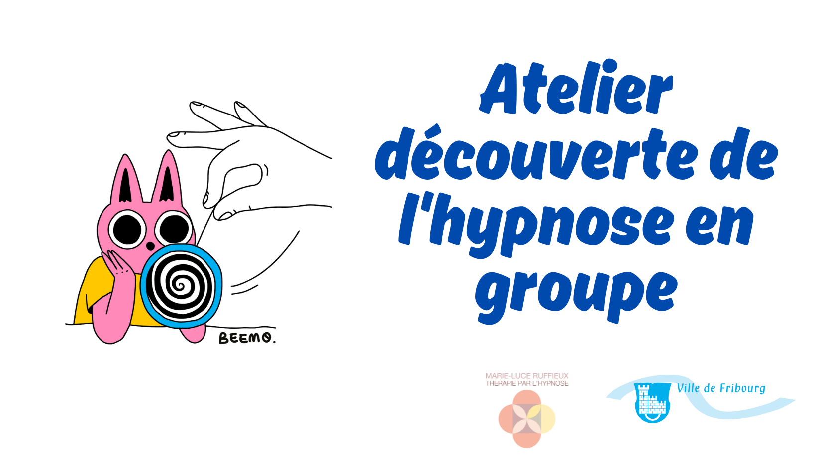 Découvrez ou approfondissez la pratique de l’hypnose (ericksonienne) avec Marie-Luce Ruffieux, hypnothérapeute à Fribourg. Avec des exercices de détente corporelle et de visualisation, vous parcourez des mondes et vous vous y baladez grâce aux capacités naturelles de votre imaginaire. Profitez de ce moment pour vous détendre profondément, vous faire du bien, faire le vide et le plein. Dès 14 ans. Apéritif offert.