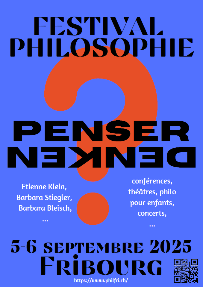 Les 5 et 6 septembre prochain, l'association PhilFri organise un festival de philosophie avec conférences, ateliers, représentations théâtrales et projections dans divers espaces de la ville de Fribourg. Une partie du programme se déroulera à L'Atelier.