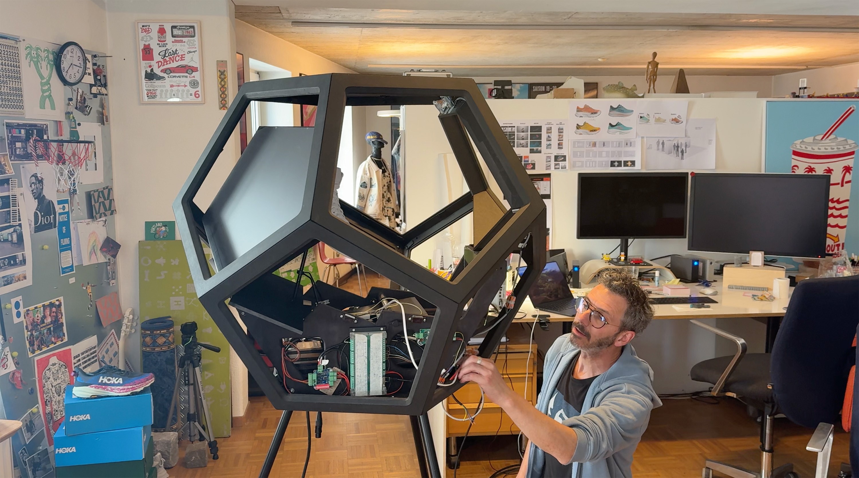 Tel un écrin numérique, l’installation interagit avec l’objet central et révèle ses multiples dimensions. Entre pop culture et art numérique, un face-à-face visuel et interactif avec une icône.