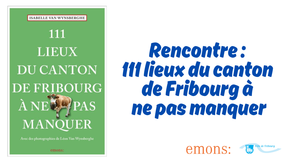 Pensez-vous bien connaître votre canton ? Et si des lieux insolites, méconnus ou chargés d’histoire se cachaient près de chez vous ? Lors de cette rencontre autour du livre « 111 lieux du canton de Fribourg à ne pas manquer » (Editions Emons, 2025), Isabelle Van Wynsberghe et le photographe Léon Van Wynsberghe vous emmènent dans les coulisses avec des anecdotes de terrain, des choix éditoriaux et photographiques. Vente et dédicace, apéritif offert. Avec Isabelle et Léon Van Wynsberghe.