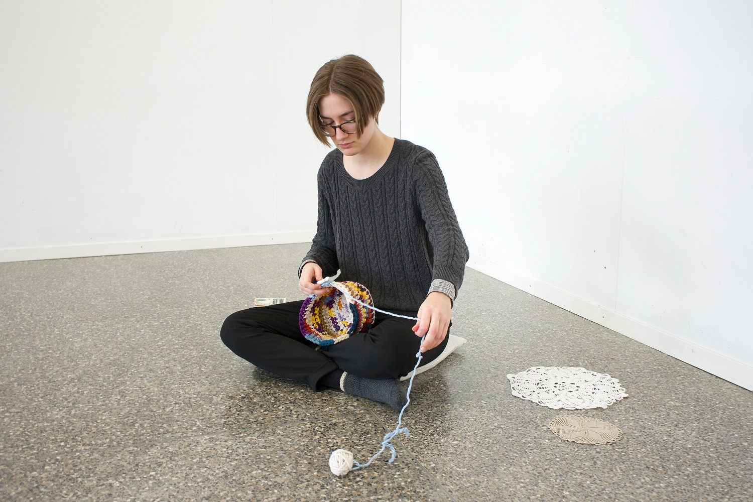 Par l’écriture et la pratique du crochet, Maurine Stoudmann traverse des thématiques telles que la mémoire, les relations intergénérationnelles et la perte. De cet intérêt, elle a développé plusieurs projets en lien avec l’archive et plus récemment avec les savoir-faire liés au fil: crochet, couture, broderie, tricot. Lorsque sa grand-mère lui parle d’un tableau brodé par sa mère représentant une scène de chasse, elle se questionne sur la réception, la conservation et la réutilisation de ces objets faits main et reçus en héritage. Sa recherche artistique sera donc basée sur ce tableau, afin de s’interroger sur les savoir-faire intergénérationnels, en utilisant des médias tels que la broderie, le collage ou l’écriture.