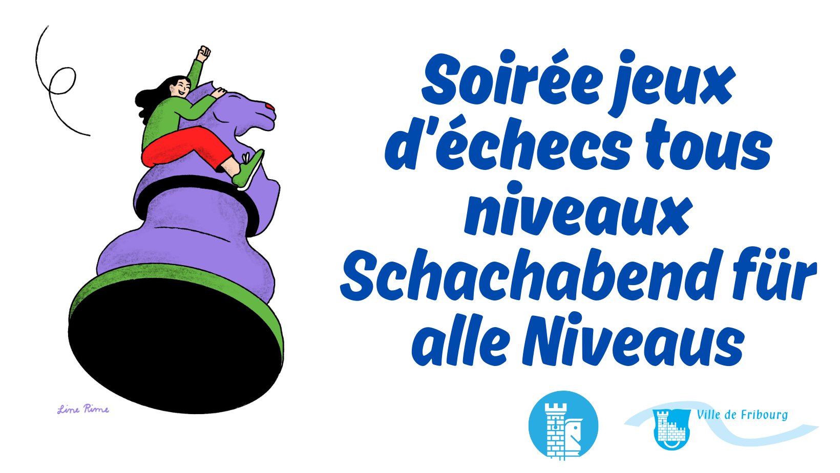 Tous les deuxièmes jeudis du mois, profitez de la présence du Club d’échecs de Fribourg pour en découvrir la pratique. Tous les niveaux sont bienvenus, que ce soit pour apprendre les bases ou faire un match. Un moment de rencontre et d’échange pour toutes et tous !