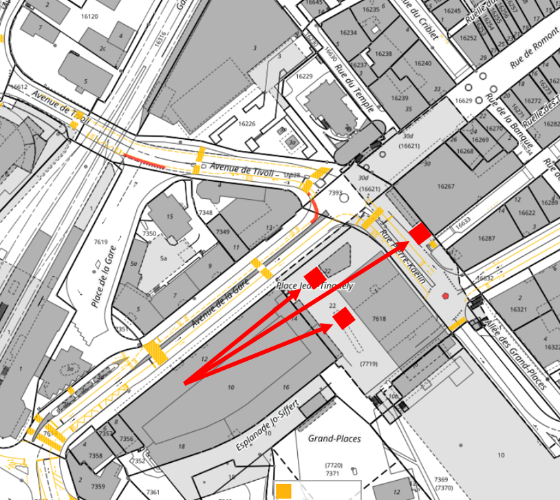 Rue Pierre Kaelin: réalisé en septembre 2019; place Jean-Tinguely: courant 2019