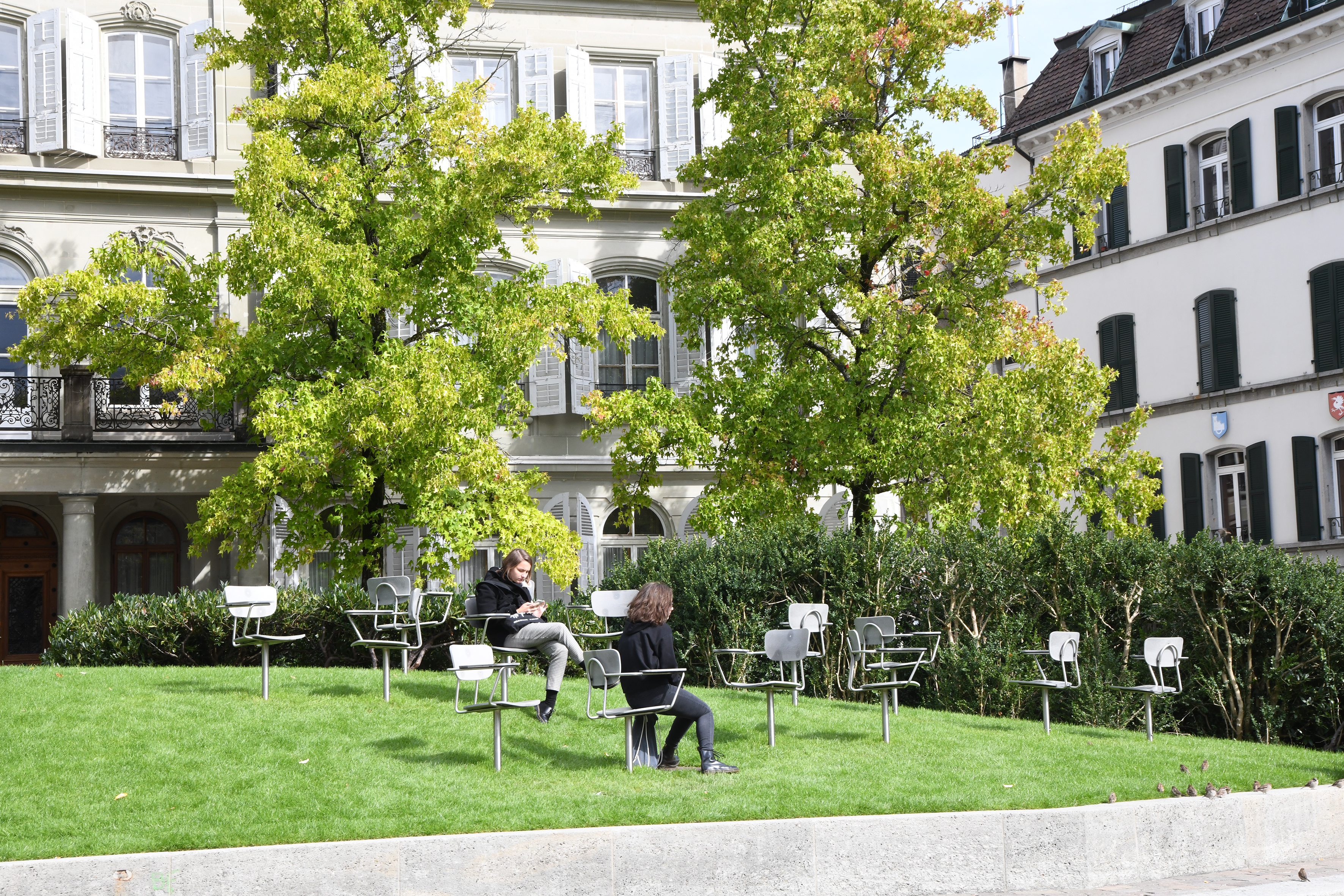 La disposition ainsi que le choix du type de chaise contrastent des autres aménagements urbains conventionnels.