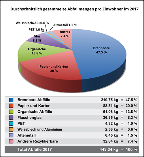 Die Hälfte davon ist Hauskehricht, welcher der Kehrichtverbrennungsanlage Saidef AG zugeführt wird.