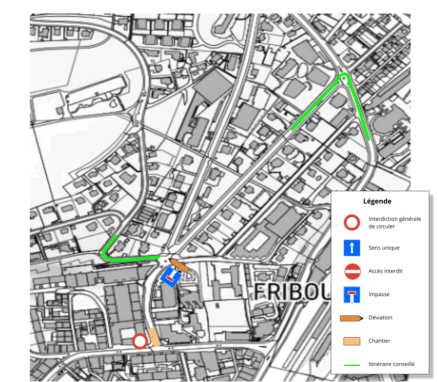Av. du Gambach fermée vers le carrefour avec l’avenue Beauregard. Accès au quartier par l’av. Weck-Reynold ou l’av. des Vanils.