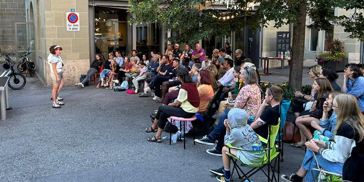 Das Théâtre de la Carriole lässt sich während sechs Tagen auf der Terrasse nieder und belebt sie.