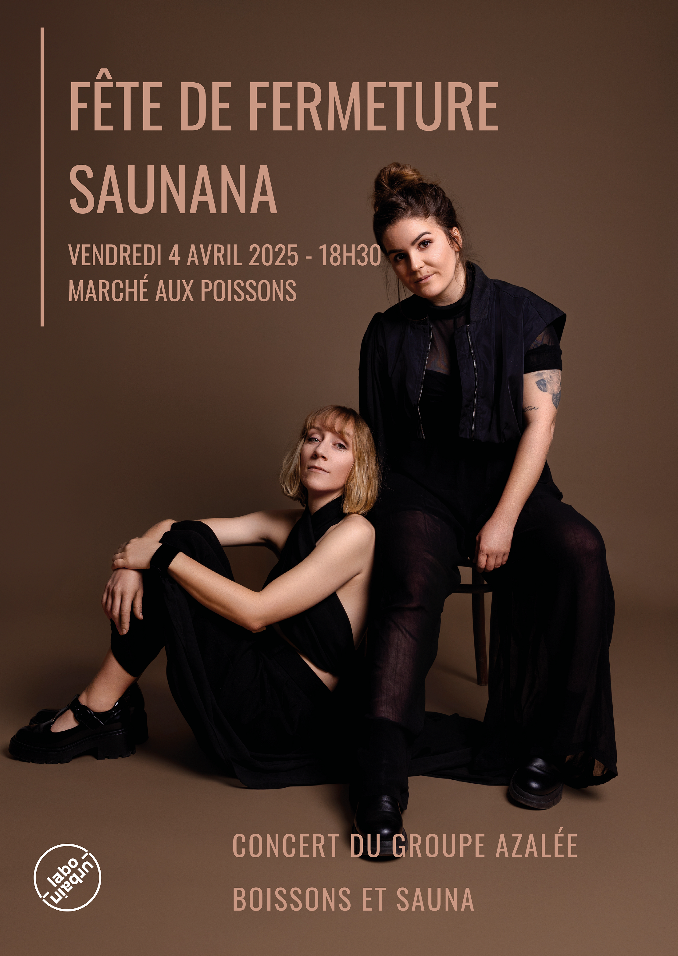 Zum Abschluss der Saison veranstaltet das Saunana ein Fest! Auf dem Place du Marché aux Poissons sind ein Konzert der Gruppe Azalée, eine kleine Bar und eine Sauna geplant, um einen fröhlichen letzten Moment zu verbringen.