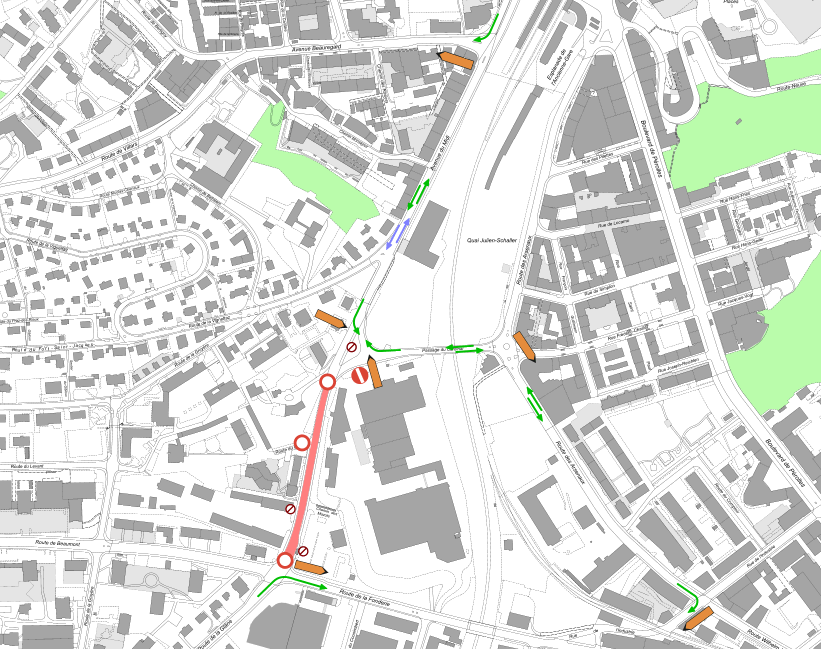 - Verkehr: Route de la Glâne während eines Sonntags gesperrt; Umleitung über die Route de la Fonderie und die Rue des Arsenaux; LKWs (>21 Tonnen) benützen die Avenue Beauregard