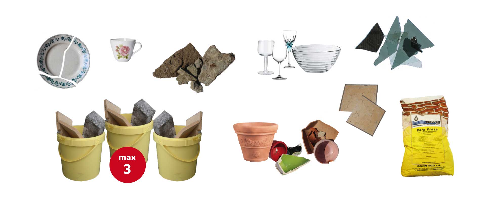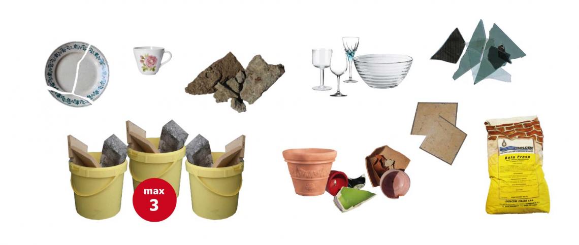 - Glas: Fensterglas, Trinkgläser, Blumenvase, Salatschüsseln usw.