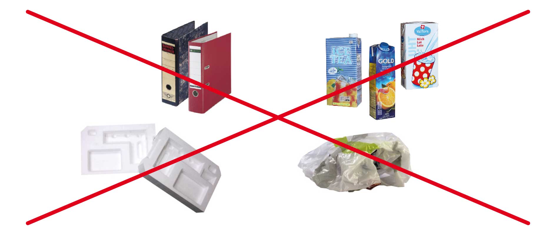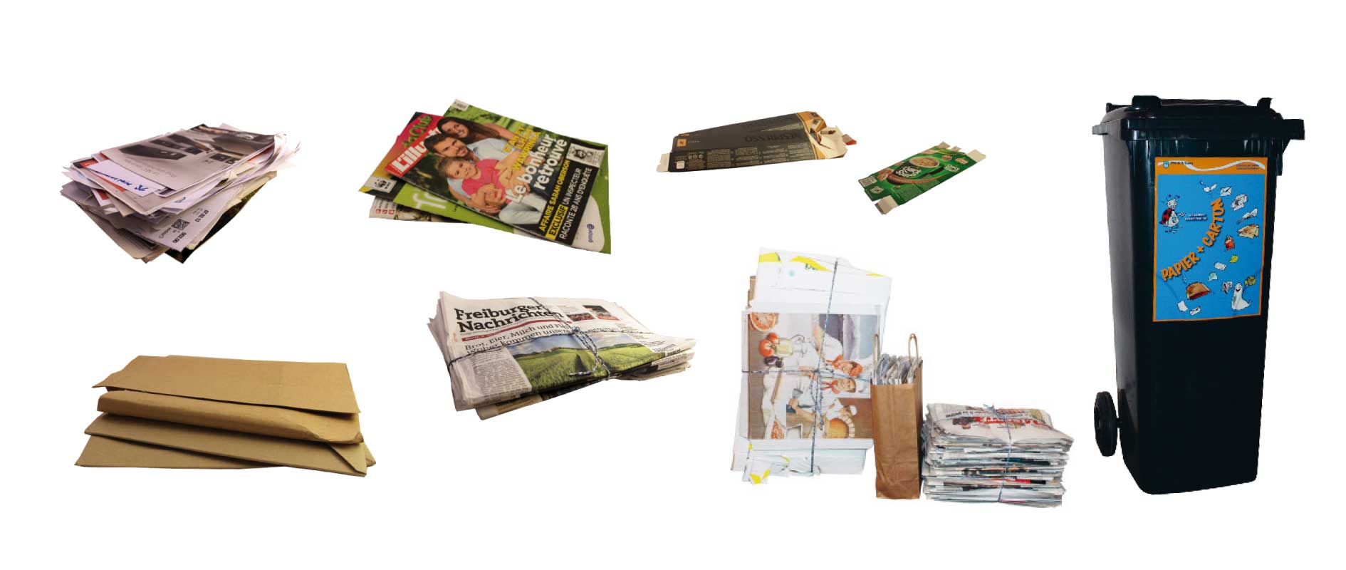 - Altpapier, Karton, Zeitungen, Zeitschriften, Briefcouverts usw.