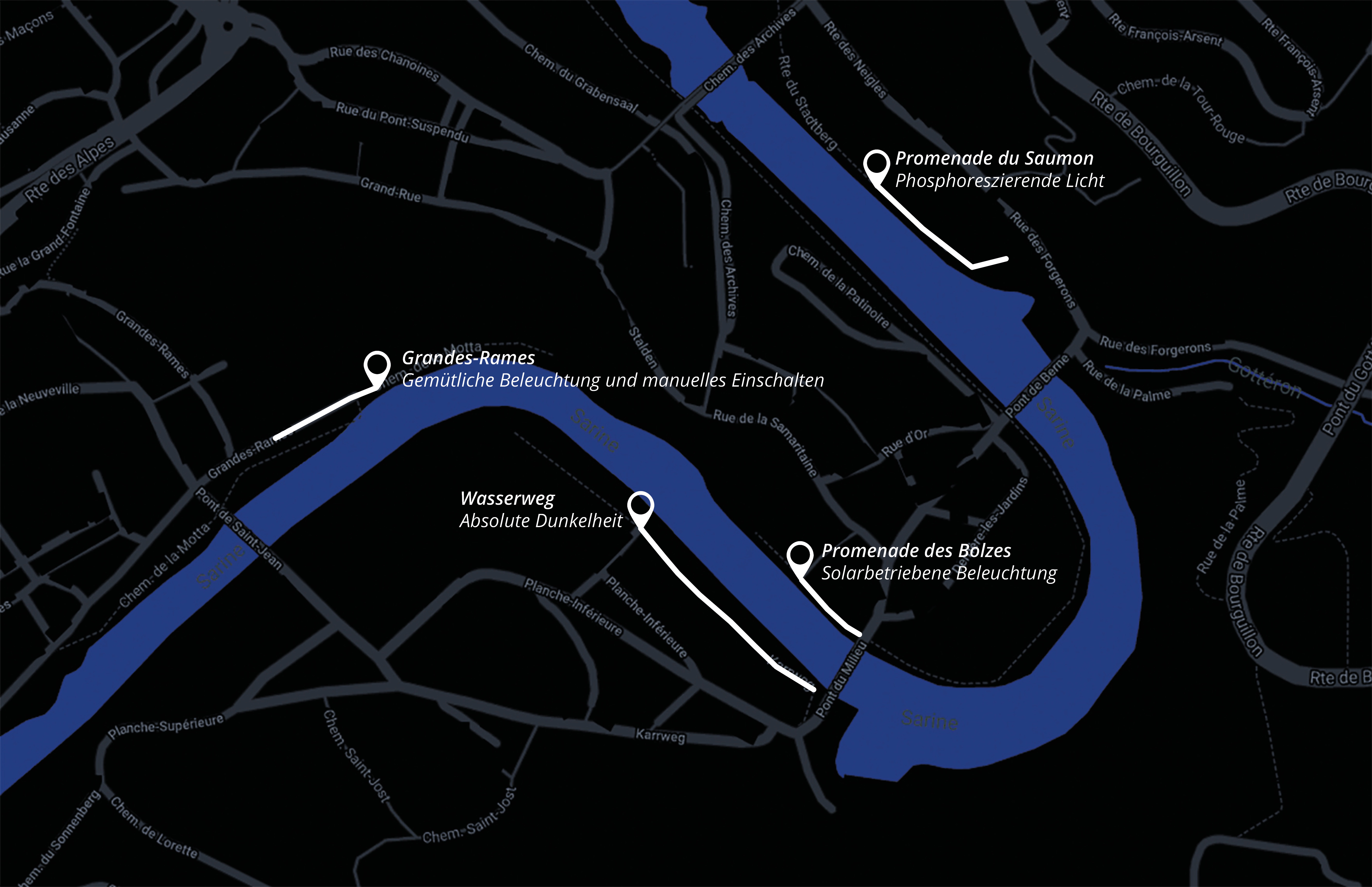 Die Stadt Freiburg verfügt über eine innovative Strategie für die öffentliche Beleuchtung auf dem Stadtgebiet. Diese Strategie verfolgt ein vielfältiges Ziel: gemütliches und freundliches Dämmerlicht mit sparsamer, sicherer und umwelt- und biodiversitätsfreundlicher Beleuchtung kombinieren. Diese Strategie ist eine wertvolle Entscheidungshilfe, um alle Projekte der Stadt, die mit künstlichem Licht zu tun haben, auf einheitliche Weise zu entwickeln. Sie wird es der Stadt auch ermöglichen, die notwendigen Instrumente zu entwickeln, um eine angenehmere und harmonischere Lichtlandschaft im gesamten Stadtgebiet (einschliesslich der privaten Beleuchtung) zu schaffen.