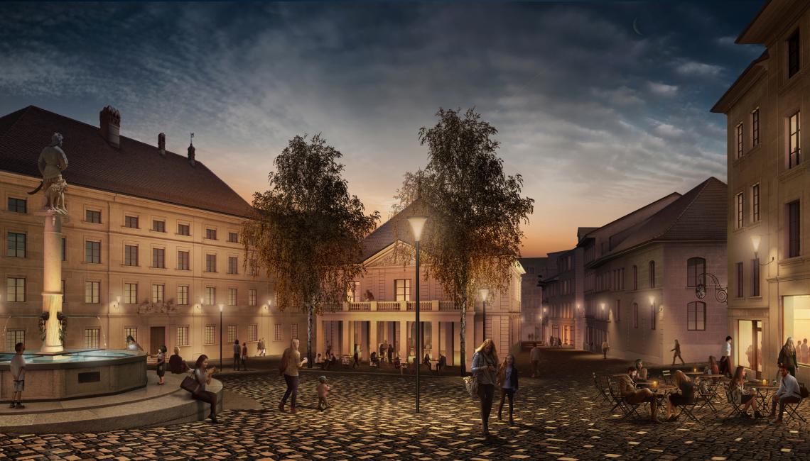 Eine Studie zur öffentlichen Beleuchtung rundet das Projekt ab. Damit soll ein attraktiver und angenehmer nächtlicher Stadtraum für die Bewohner und Besucher geschaffen werden. Dank einer klaren und einfachen Orientierung am Abend und in der Nacht können Spaziergänger das nächtliche Ambiente der Stadt in aller Sicherheit geniessen.