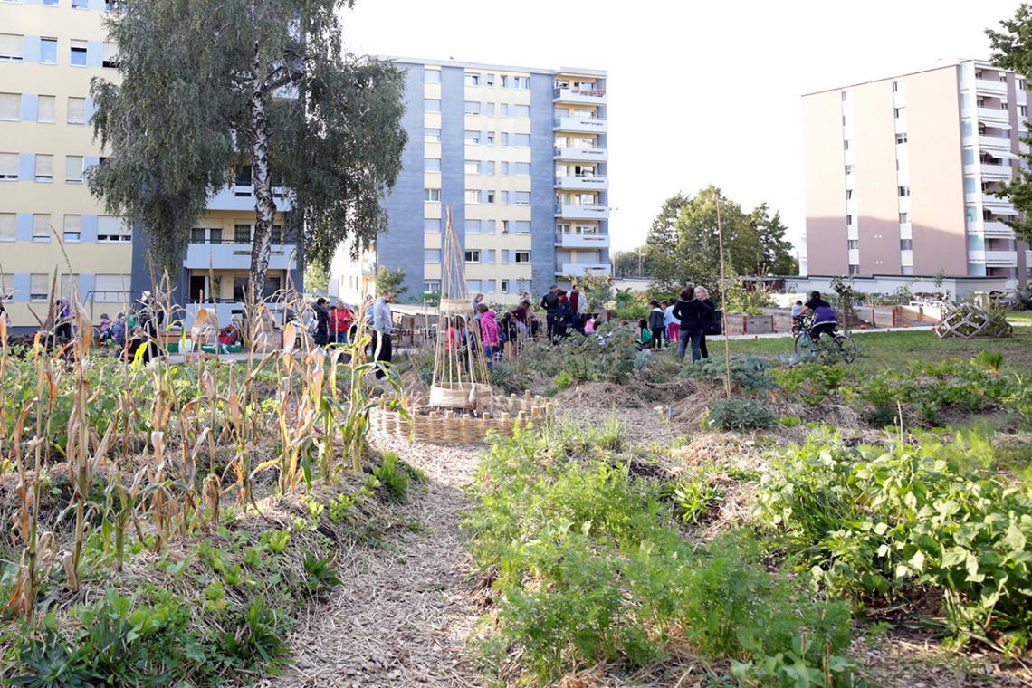Den Bewohnern, Vereinen und Kollektiven wird ein grosses Pflanzfeld zur Verfügung gestellt. Es besteht aus einem grossen Mandala und verschiedenen Kreisen mit Permakulturen, herkömmlichen Kulturen, Beerenpflanzen, Kürbissen und Zucchini. Dank einigen Hochbeeten können auch Menschen im Rollstuhl gärtnern. Eine Holzkuppel soll Begegnungen und den Austausch fördern. Der Garten wird gemeinsam mit den Bewohnern und einer soziokulturellen Animatorin gestaltet, verwaltet und belebt. Er ist für alle zugänglich und entwickelt sich je nach Bedürfnissen und Ideen der Teilnehmenden.