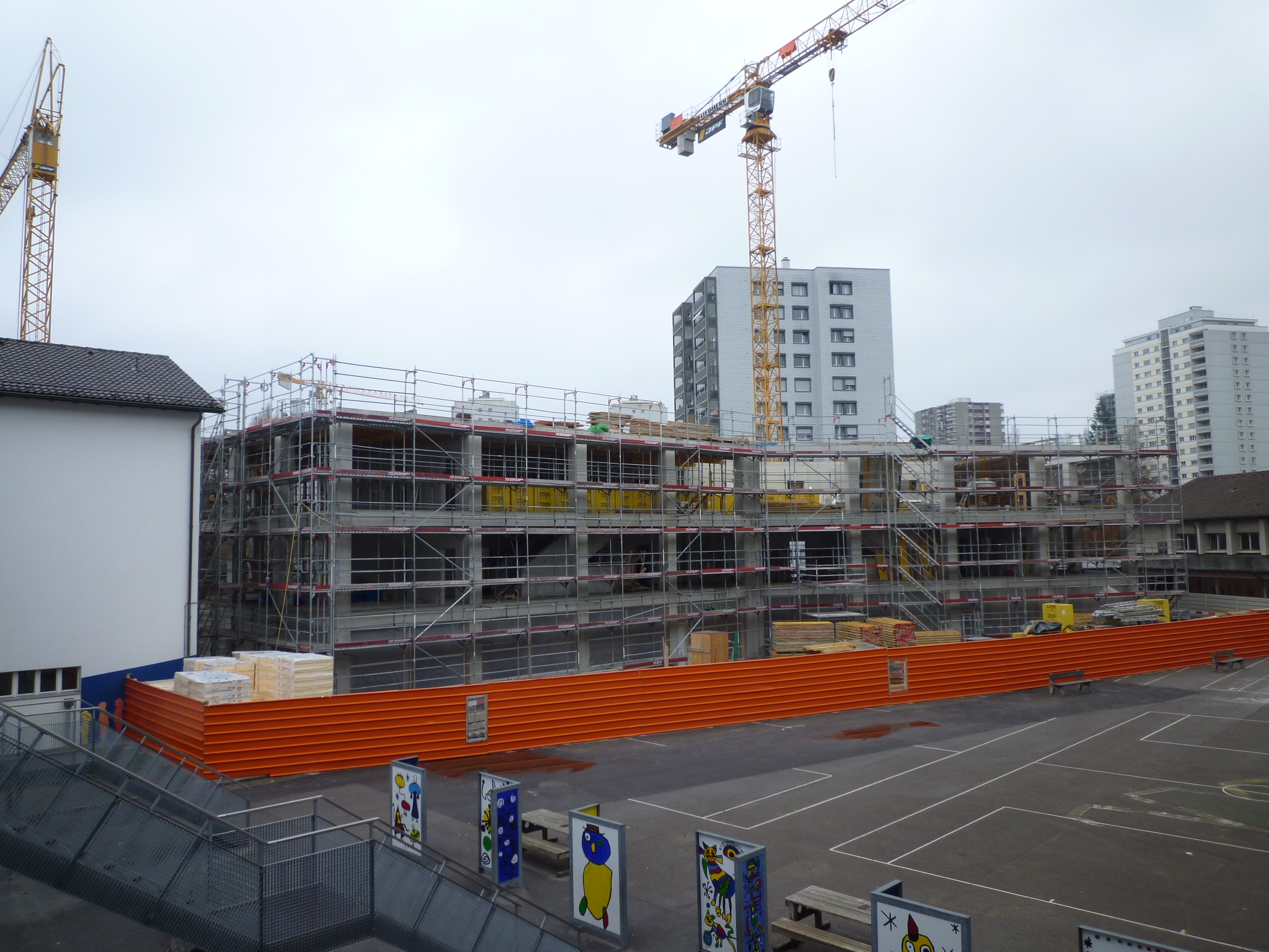 Das Gebäude der ersten Etappe steht seit Juli 2017 im Bau. Das mit 24.5 Millionen Franken veranschlagte Gebäude wird den Schülern zum Schulbeginn 2019 seine Türen öffnen.
