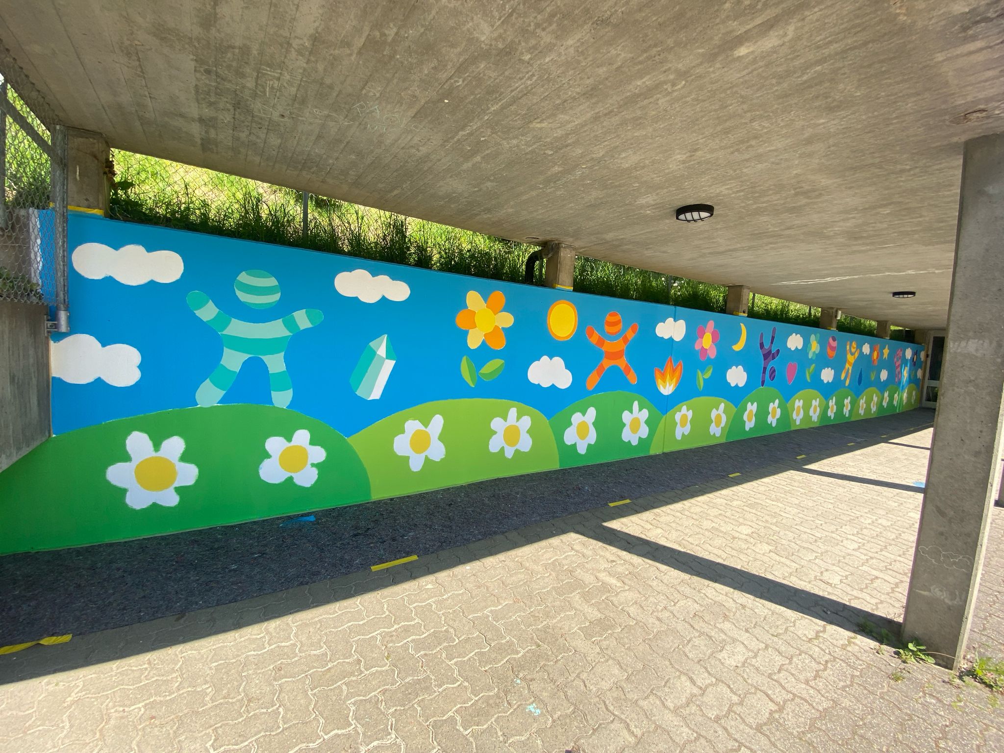Anlässlich des 50-jährigen Bestehens der Jura-Schule (französischsprachige Gebäude B und C) wurden in Abstimmung mit dem Projekt Bildungslandschaft der Stadt Freiburg mehrere Projekte realisiert. Ziel war es, den Kindern anlässlich dieses Jubiläums einladendere und fröhlichere Räume zu bieten. Die Projekte konnten die Eltern der Schüler der Schule anlässlich der Feier am 27. Juni 2025 entdecken.