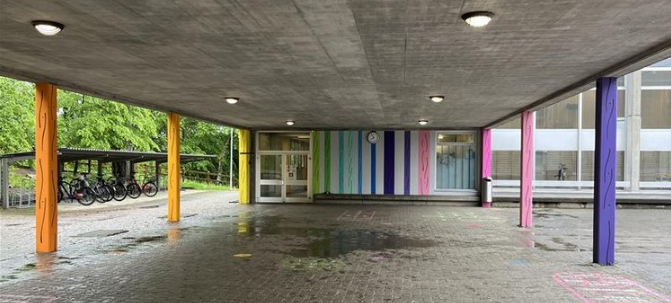 Der Künstler L'Original wurde beauftragt, mehrere Wände des Schulkomplexes zu verschönern. Das alte Wandbild im Innenhof des Gebäudes C wurde durch ein farbenfrohes Werk ersetzt, das unter Mitwirkung der Schüler der Klasse 2H entstand, die so eine Spur ihrer Zeit in der Schule hinterlassen konnten.
