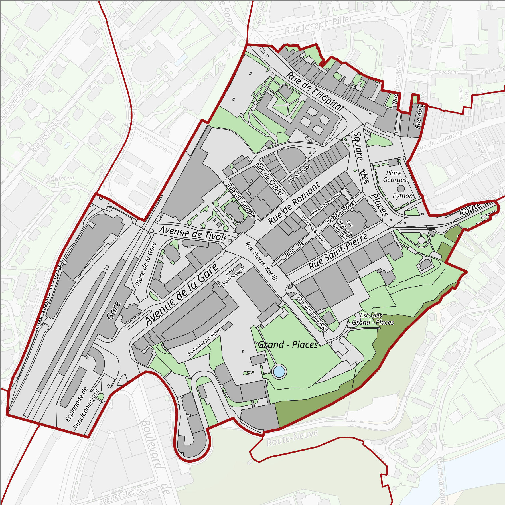 Das Quartier Places ist von der Stadtmauer (1397-1416) eingefasst, deren markantestes Zeugnis der Thierryturm ist. 1582 liess sich der bekannte Jesuit Petrus Kanisius im Quartier nieder, wo er das Kollegium St. Michael gründete.