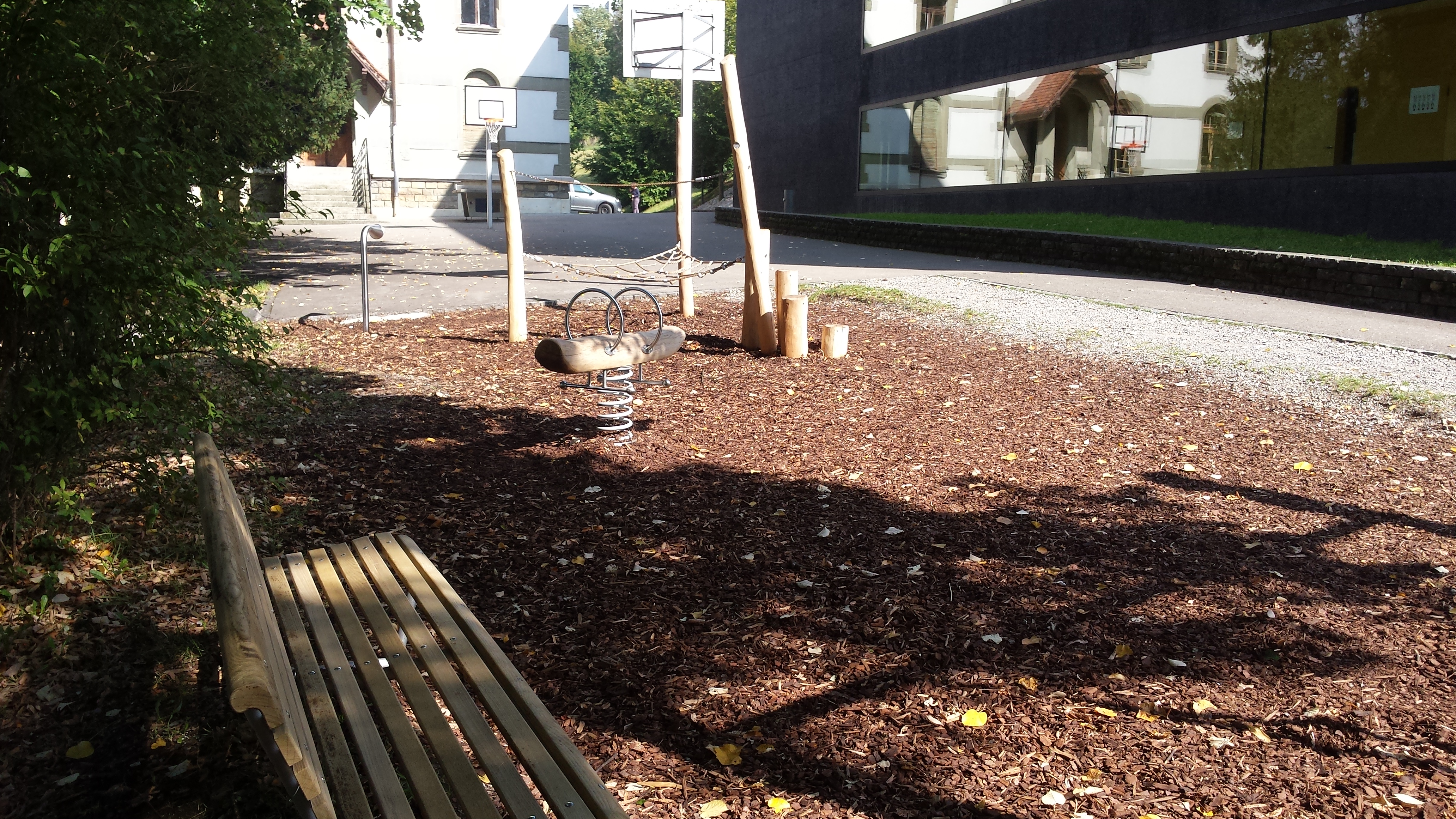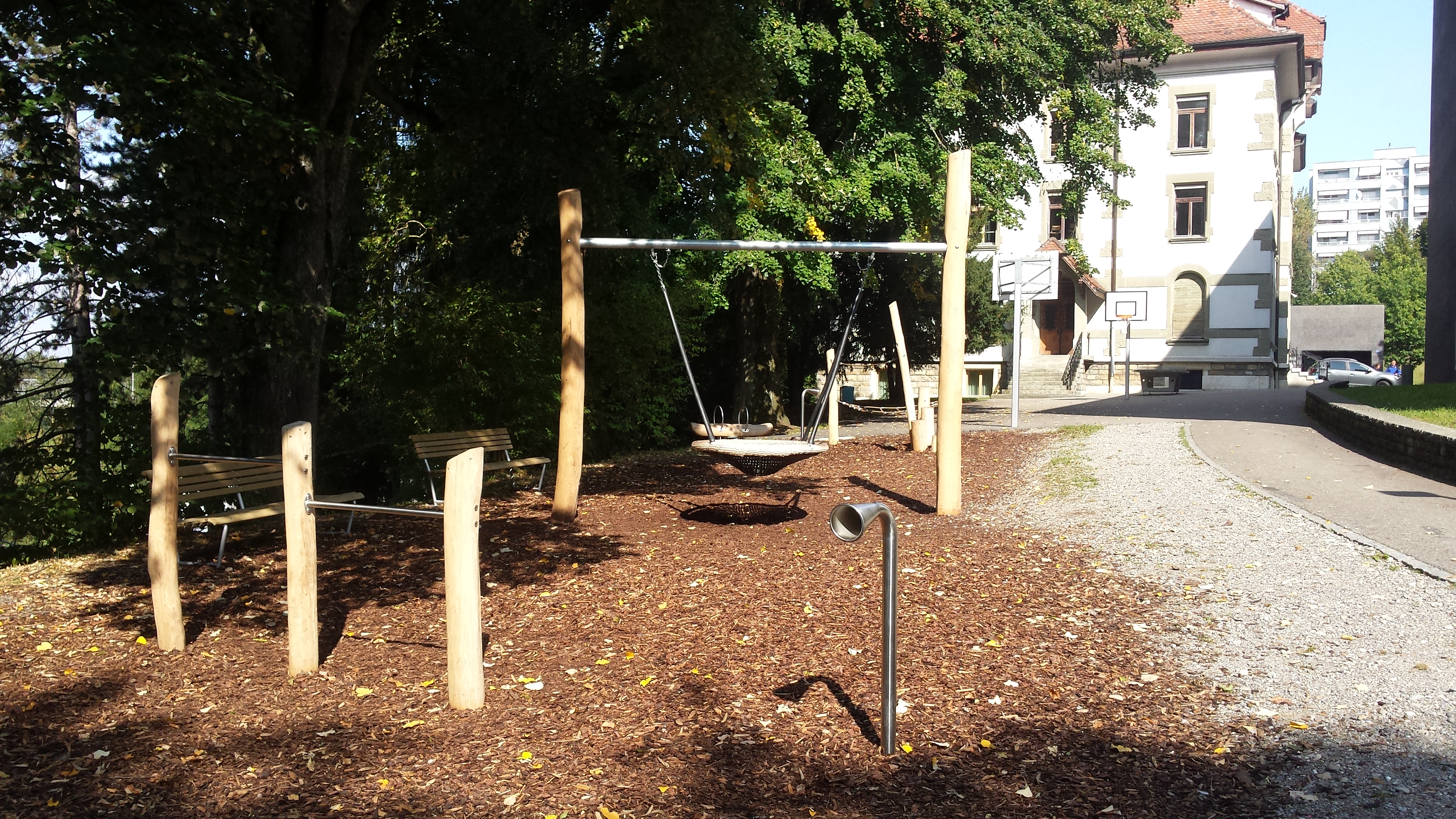 La place de jeux Villa Thérèse se trouve au cœur du complexe scolaire du même nom. Rénovée en 2020, elle propose dorénavant une balançoire ainsi que des jeux d’équilibre et d’acrobaties en bois. Une place de sport avec des buts, des paniers de basket et des tables de ping-pong complète l’offre d’activités et sera rénovée prochainement. Une surface verte et de grands arbres apportent une touche végétale et rafraîchissante à l’ensemble.