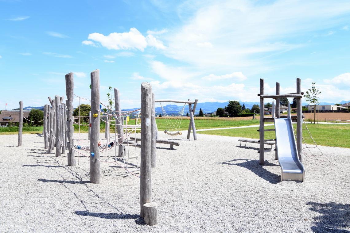 Issue du projet d’aménagement Fribourg (ou)vert, la place de jeux du parc des Maggenberg a été réalisée en 2019. L’originalité des engins en bois permet aux enfants d’expérimenter des activités sensorielles et créatives uniques. Ils peuvent notamment glisser, se balancer, grimper ou profiter du jeu d’eau qui exploite habilement la pente. Le vaste espace engazonné, le revêtement en sable et gravier ainsi que les arbres fraîchement plantés assurent une ambiance très naturelle et harmonieuse.