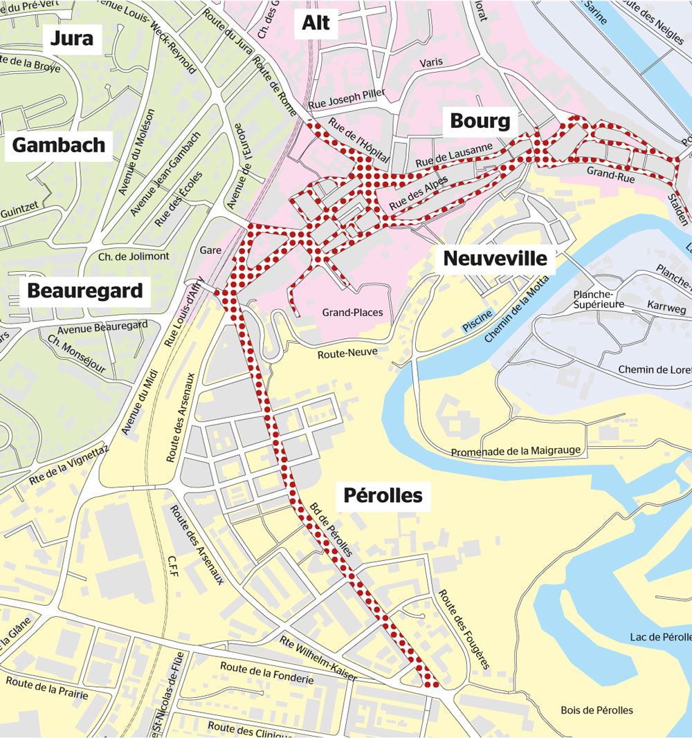 Attention ! Les camions ne circulent plus dans la rue de Romont et les rues piétonnes adjacentes, merci d'utiliser un des nouveaux points de ramassage.