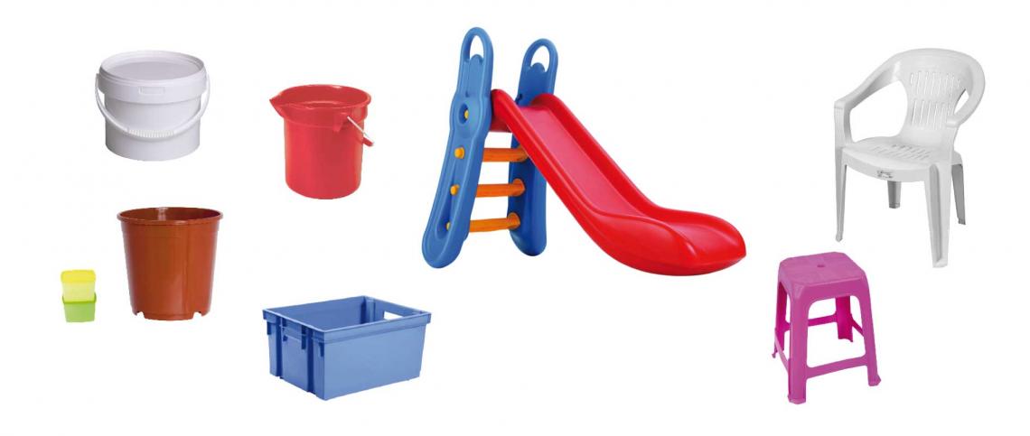 - Plastique dur PP: mobilier de jardin, caisses, bidons, etc.