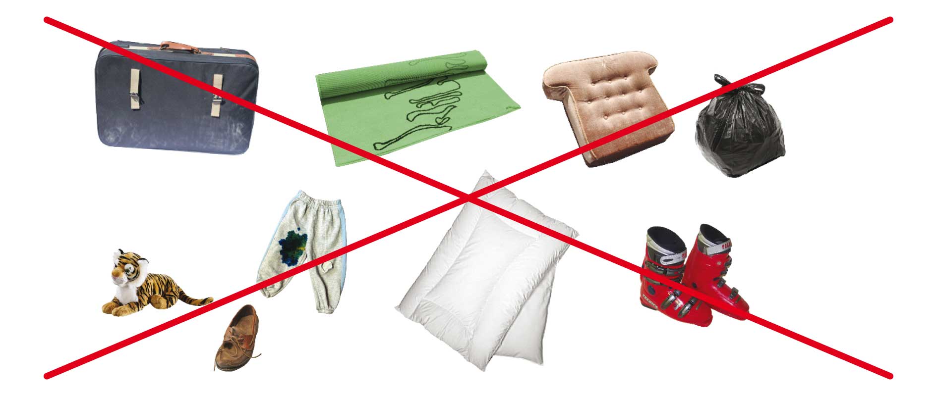 Déposer dans un sac de collecte «textiles» transparent (disponible à la réception de la déchetterie des Neigles)