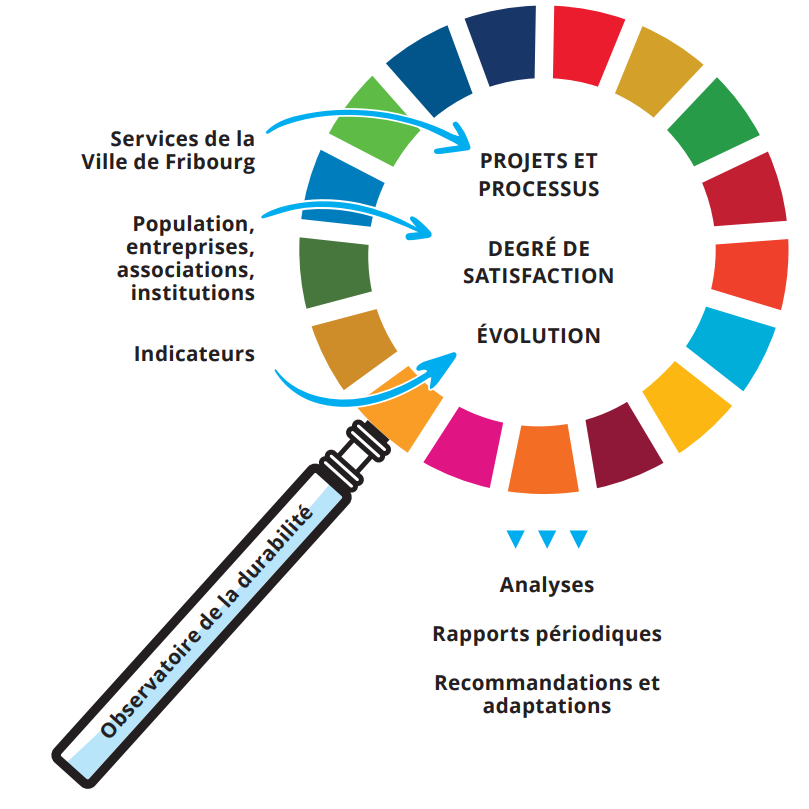 La Ville de Fribourg se dote d’un observatoire de la durabilité. Ce mécanisme de suivi régulier permet l’analyse de l’évolution de la durabilité, avec la possibilité d’ajustements continus. C’est une manière de motiver les pôles d’actions dans leur engagement !