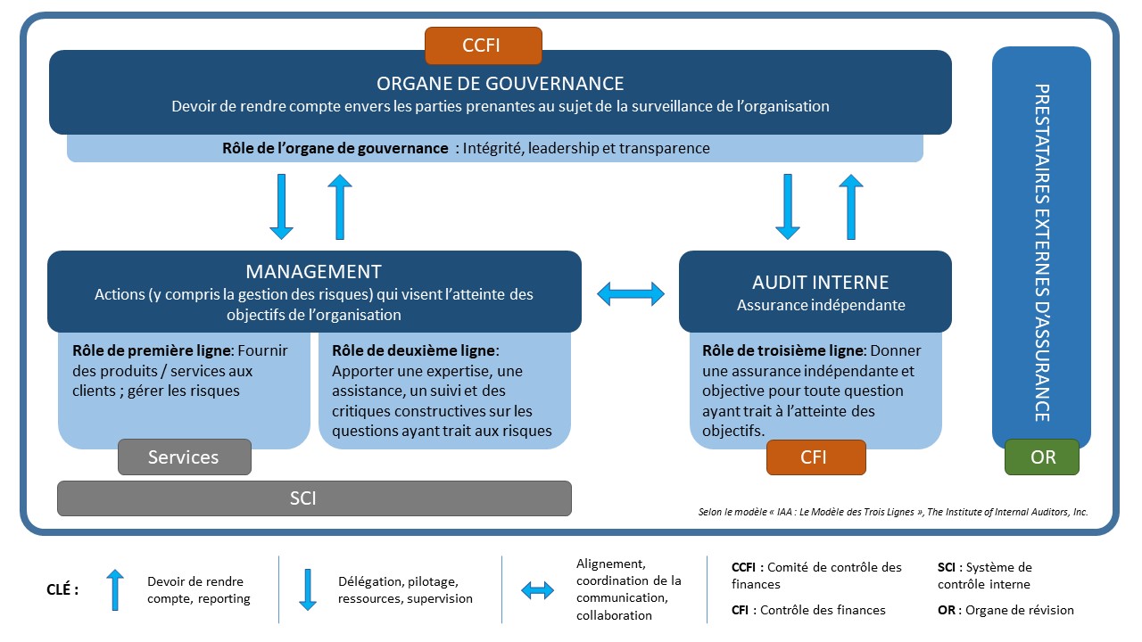 Le CFI renseigne l’administration communale sur le degré de maîtrise de ses opérations, lui apporte ses conseils pour les améliorer et contribue à créer une valeur ajoutée à ses activités. Il l’aide également à atteindre ses objectifs en évaluant ses processus de gestion des risques, de contrôle et de gouvernement d’entreprise, tout en faisant des propositions pour renforcer leur efficacité.