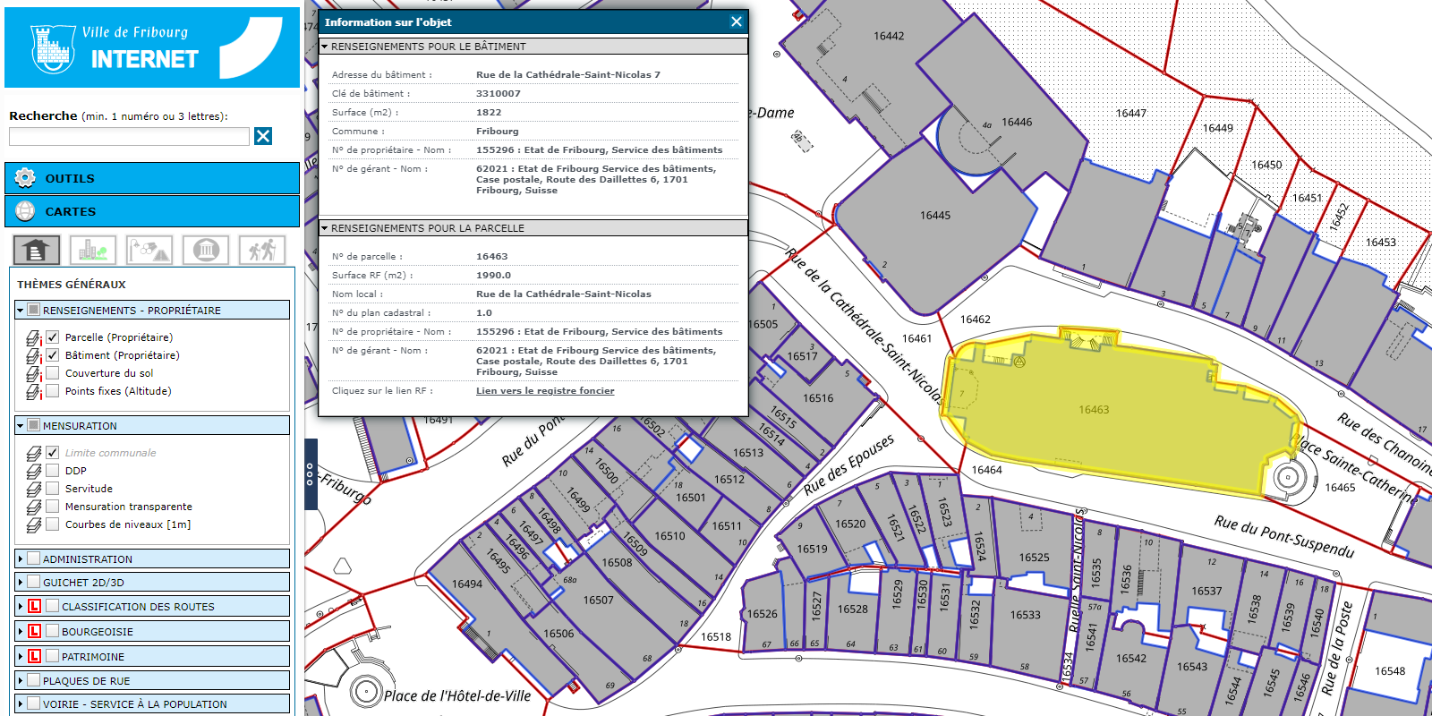 Vous désirez connaître le propriétaire d'un bâtiment, la surface d'un terrain ou l'altitude exacte d'un lieu?
