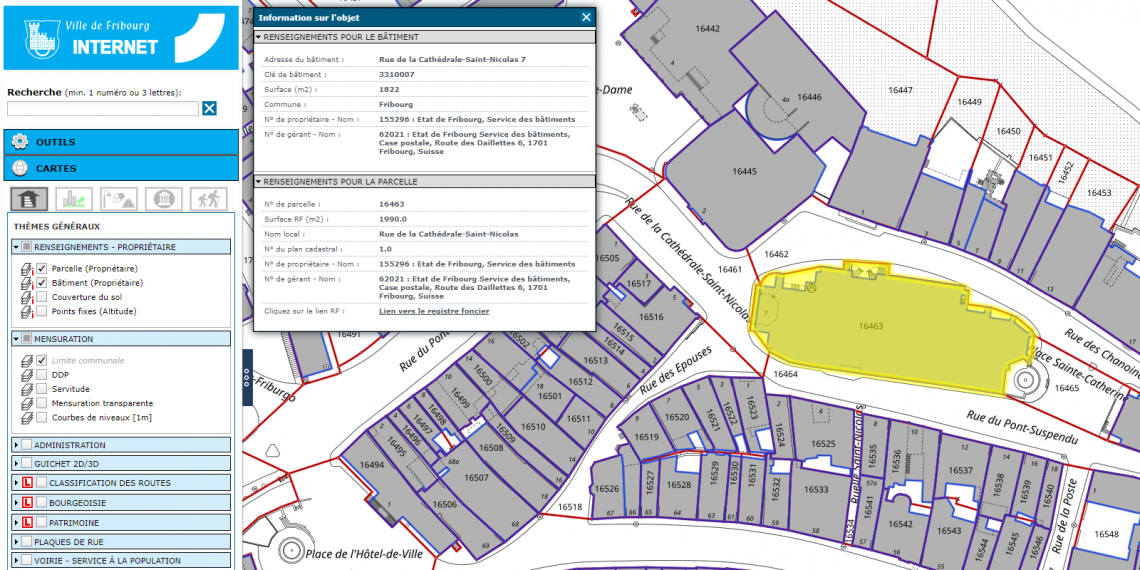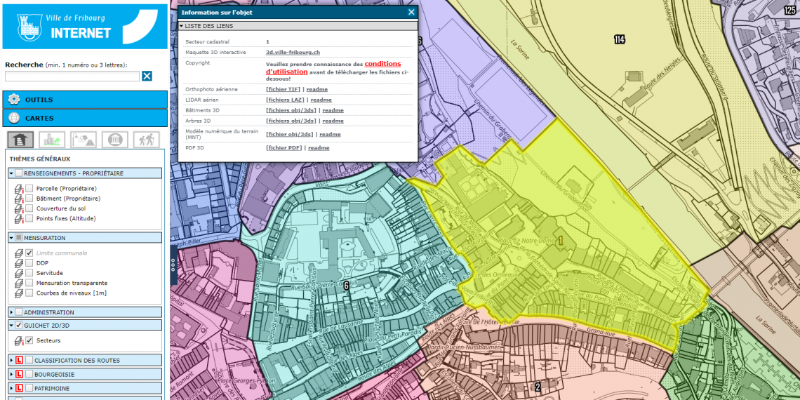 Une grande partie de ces données peuvent être consultées gratuitement, par tous, sur le portail cartographique de la Ville : www.sitecof.ch