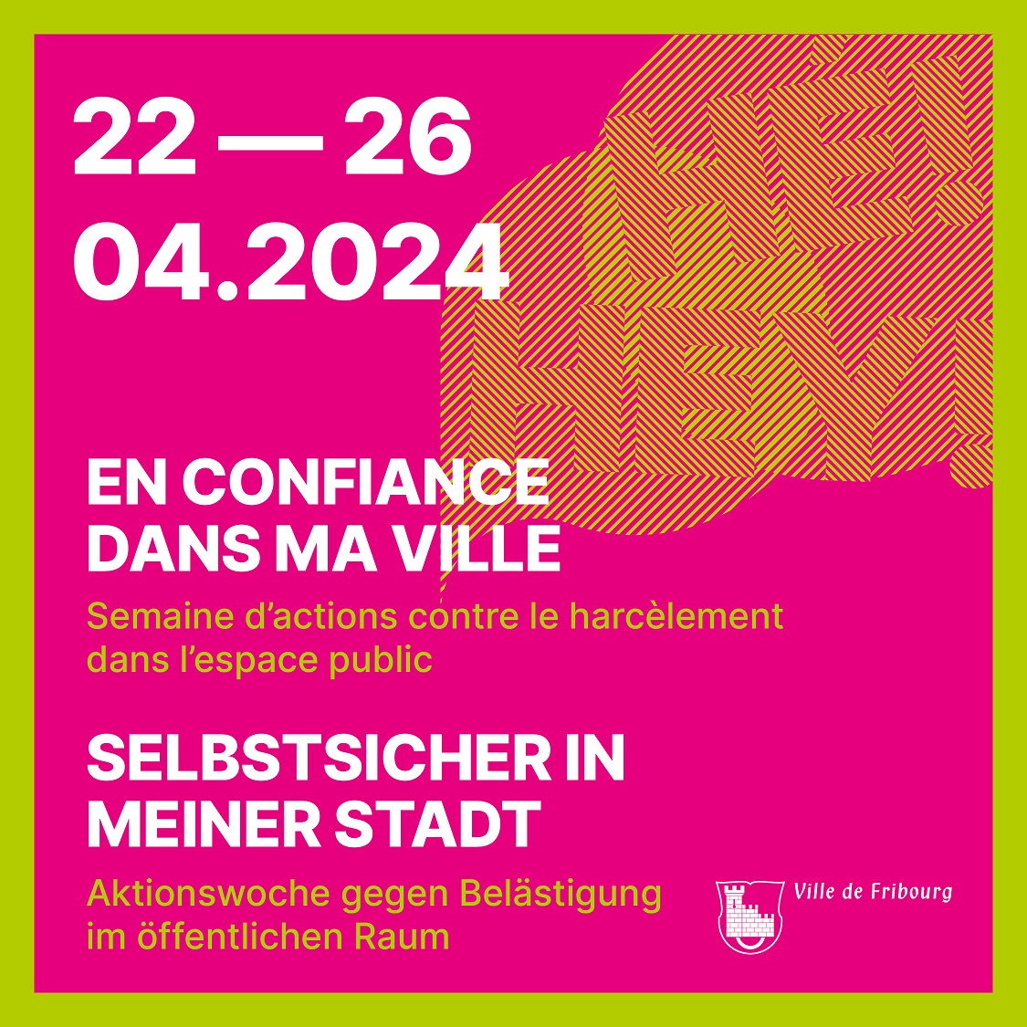 Depuis 2024, la Ville de Fribourg organise à chaque printemps une semaine d’actions contre le harcèlement dans l’espace public, intitulée « En confiance dans ma ville ».