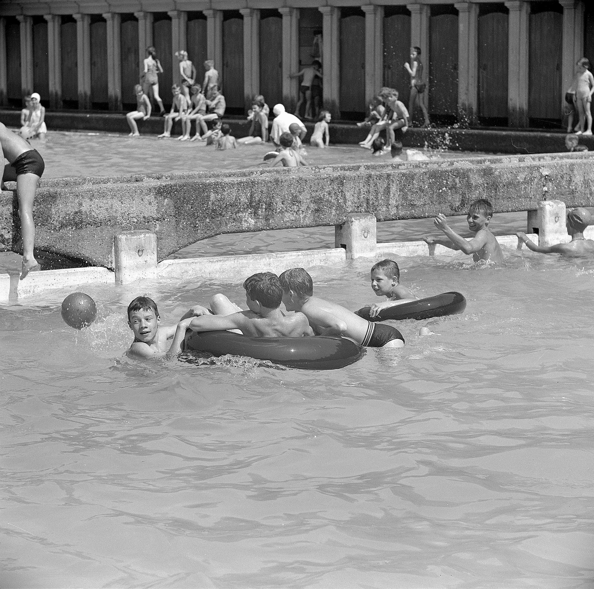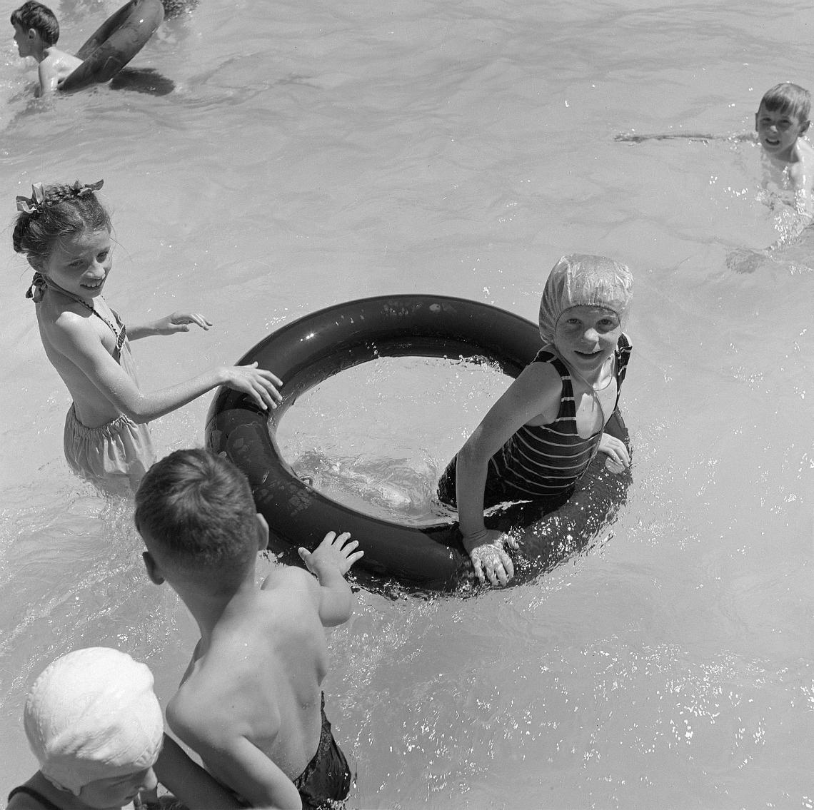 Enfants aux Bains de la Motta avec bouées, ca. 1950 - © • Bibliothèque cantonale et universitaire de Fribourg, Fonds Jacques Thévoz