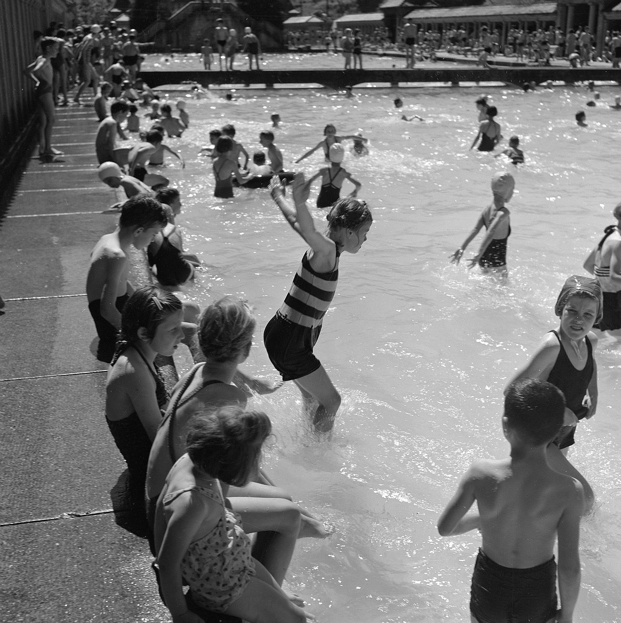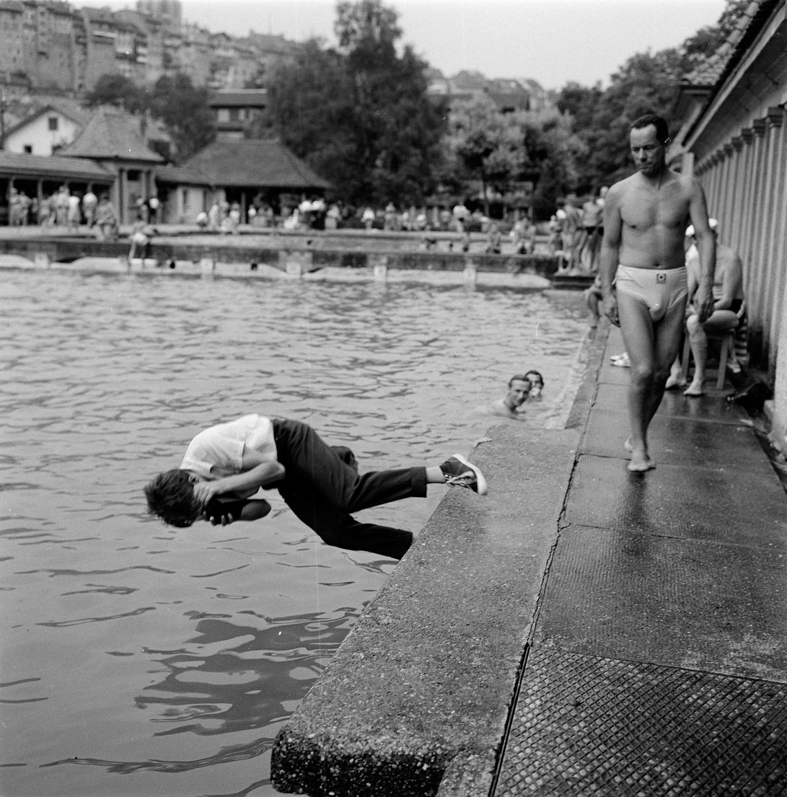 Natation aux bains de la Motta (1962) - ©Bibliothèque cantonale et universitaire de Fribourg, Fonds Johann et Jean Mülhauser